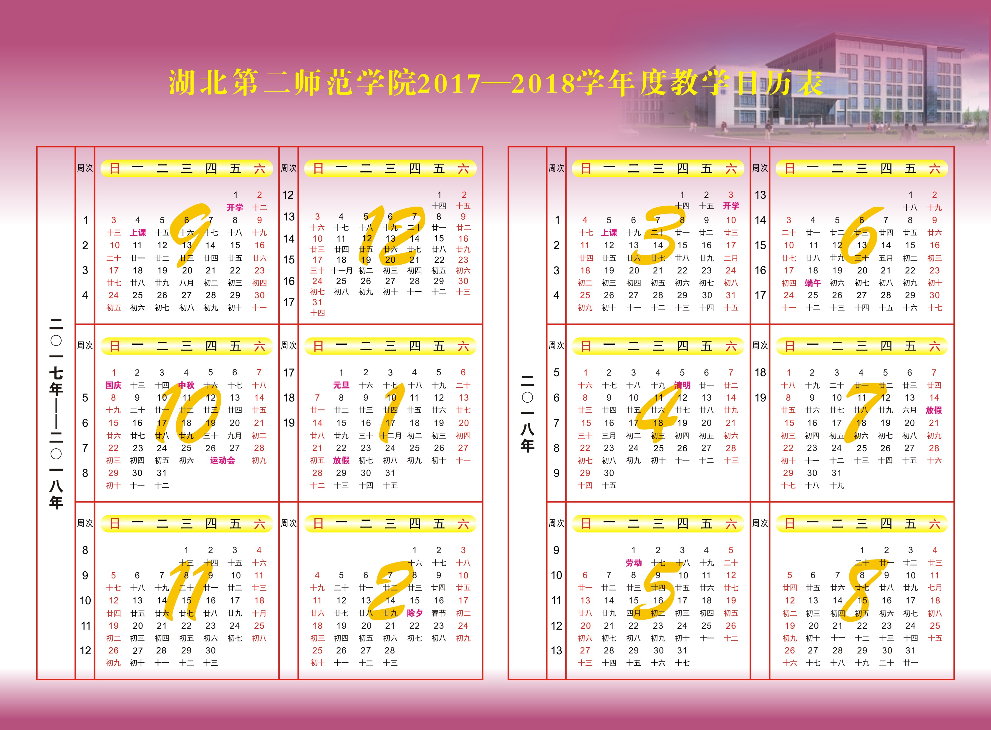 湖北第二师范学院2017-2018学年度教学日历表
